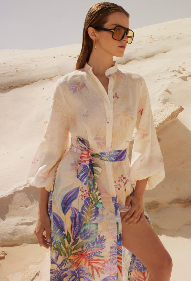 Cherry Blossom High Neck Twist One Piece -Multi